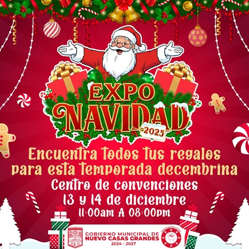 | Nuevo Casas Grandes, Chih 09/12/2025 El Gobierno Municipal de Nuevo Casas Grandes ha anunciado la realización de la “Expo Navidad 2025”, un evento diseñado para facilitar a la ciudadanía la compra de sus regalos y artículos festivos en un solo lugar.Nota Completa |