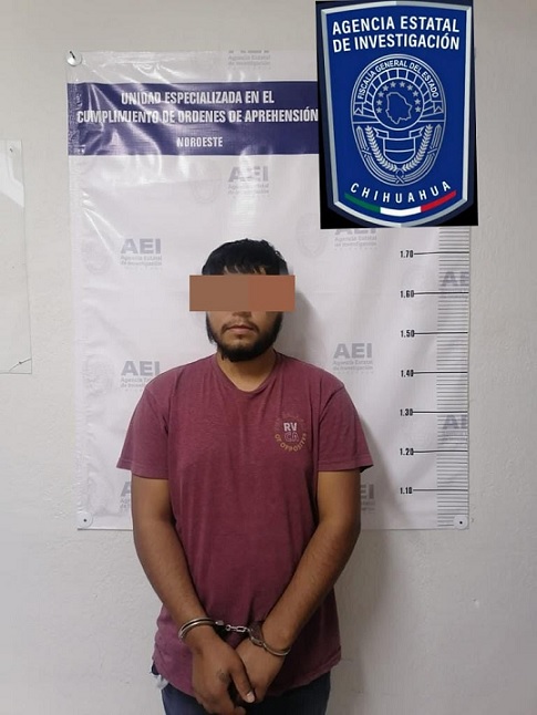 Ante la denuncia interpuesta por la afectada y con base en la carga probatoria expuesta por el Ministerio Público, un Juez de Control, concedió una orden de aprehensión que fue cumplimentada por elementos de la Agencia Estatal de Investigación el pasado 26 de abril, en el cruce de las calles Hidalgo y Galeana, en la colonia Puerto Palomas.