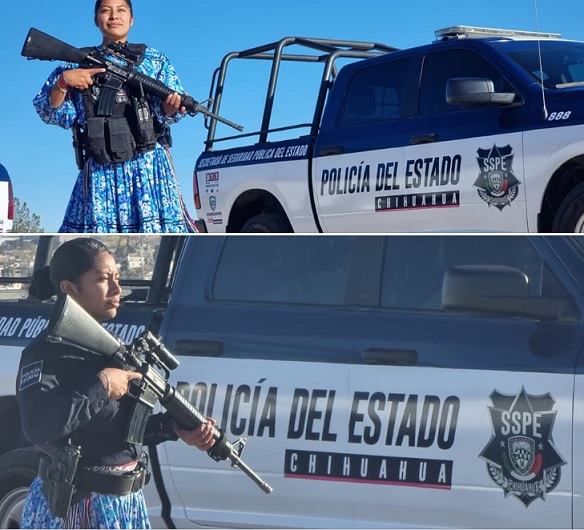 Se dijo orgullosa de pertenecer a la etnia ralámuli y a las filas de la Policía del Estado, es por eso que porta tanto su uniforme como su vestimenta típica, la cual usa cuando visita a su familia durante las franquicias.