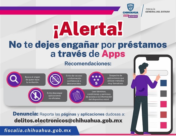 Reporta las páginas y aplicaciones dudosas al correo: delitos.electronicos@chihuahua.gob.mx