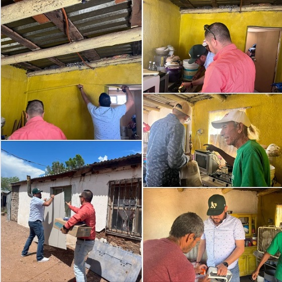 El día de hoy, el presidente Municipal de Casas Grandes, C. Roberto Lucero Galaz, a través de la Dirección de Desarrollo Social, a cargo del Lic. Juan López, contribuyeron a una noble y beneficiosa acción. Puesto que personalmente se dieron a la tarea de acudir a realizar mediciones del techo de este adulto y apoyarlo con hojas de tablaroca para que fuesen instaladas en el techo de dicho hogar.