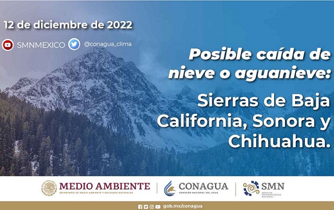 | SE PREVÉ AMBIENTE DE FRÍO A MUY FRÍO CON HELADAS Y NEVADAS EN BAJA CALIFORNIA, CHIHUAHUA, DURANGO Y SONORA |