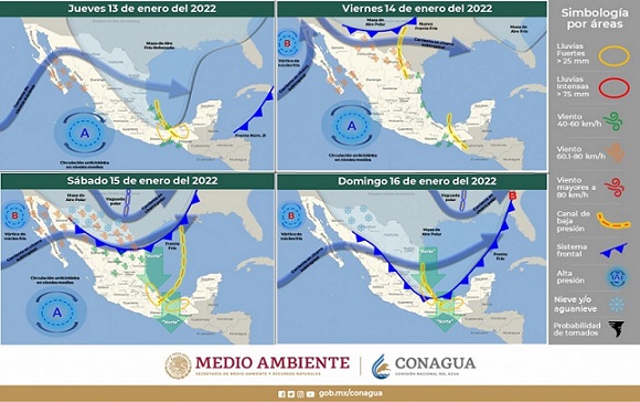 Con base en la información emitida por el Servicio Meteorológico Nacional, la CEPC informa as condiciones meteorológicas entre el jueves y el domingo en la Entidad serán las siguientes: