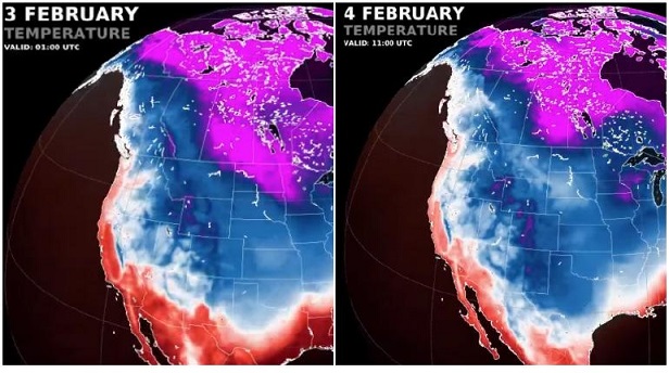 La animación da seguimiento desde el día 1 de febrero hasta el viernes 4 de febrero. Aunque cabe tomar en cuenta que también el sábado avanzará la masa de aire polar con la Tormenta Invernal.