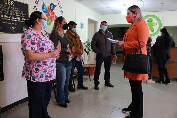 Posteriormente, la Representante Ciudadana acompañada por su equipo de trabajo e integrantes de Movimiento Ciudadano en Ascensión, acudieron a las instalaciones de la Unidad Básica de Rehabilitación (UBR) que se encarga de brindar sesiones de terapia física, terapia de lenguaje y terapia psicológica. El personal agradeció a la diputada la entrega de medicamento y de cubrebocas para el personal, ya que esto les permitirá que continúen brindando su trabajo de constante cercanía con los pacientes, pero de una manera más segura.