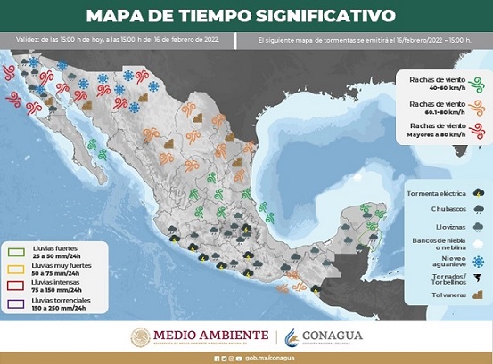 Se localizará sobre el norte de los estados de Baja California y Sonora; en interacción con una vaguada polar y la corriente en chorro subtropical, originará en las próximas horas vientos fuertes con rachas de 80 a 100 kilómetros por hora (km/h) en Baja California, Chihuahua, Durango, Sonora y el Golfo de California