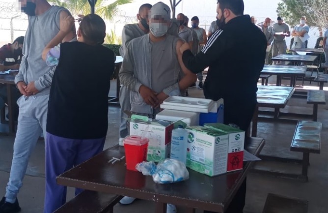 Este domingo 27 de febrero se realizó el operativo para inmunizar con la tercera dosis de refuerzo a las personas que están recluidas en los centros de Readaptación Social para Adultos (Ceresos) y de Reinserción para Menores Infractores (Cersai), ubicados en los municipios de Chihuahua, Aquiles Serdán, Cuauhtémoc, Guachochi, Hidalgo del Parral, Juárez y Nuevo Casas Grandes.