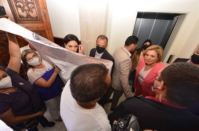 Posterior al intercambio de palabras, el Fiscal General del Estado Roberto Fierro Duarte, se reunió con los afectados en las instalaciones de Palacio de Gobierno, donde tuvieron un encuentro a puerta cerrada.