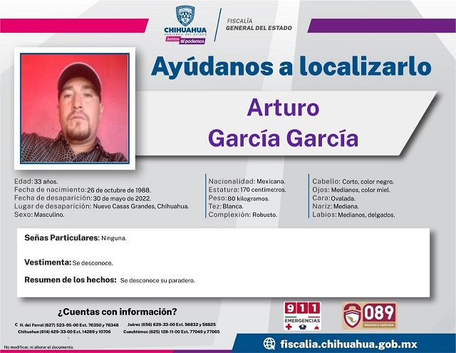 La Fiscalía General del Estado publicó las pesquisas de siete hombres que fueron vistos por última vez en Nuevo Casas Grandes, luego de que sus familiares reportaran su desaparición.