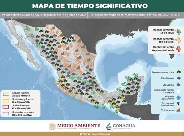 Para el fin de semana las precipitaciones serán de ligeras a moderadas en algunas zonas de la entidad, con lapsos de chubascos en Janos, Casas Grandes, Madera, Moris, Uruachi, Chínipas, Guazapares, Urique, Batopilas, Morelos, Guadalupe y Calvo, Nuevo Casas Grandes, Buenaventura, Namiquipa, Guerrero, Bocoyna, Guachochi, Balleza, Cuauhtémoc, Chihuahua, Parral, Jiménez, Camargo y Delicias.