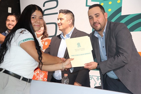 Este jueves se llevó a cabo la ceremonia de graduación del Colegio de Bachilleres Plantel 24 de Casas Grandes, El alcalde Roberto Lucero Galaz, fue parte del presídium y además padrino de la generación a quien le otorgaron un reconocimiento.