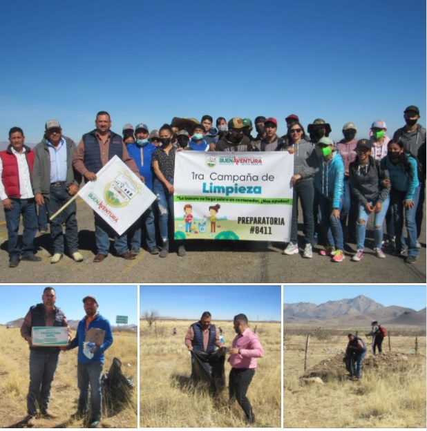 Este viernes el alcalde de Buenaventura Rogelio Pacheco acompañado por personal de presidencia municipal en coordinación con la Escuela Preparatoria #8411; dieron arranque a la primera campaña de limpieza.