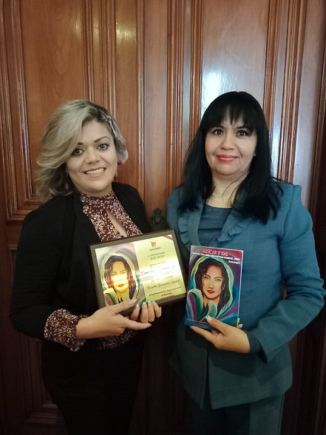 En representación del Alcalde municipal Roberto Lucero Galaz, la directora de Cultura, Flor María Domínguez otorgó un reconocimiento a la destacada escritora y poeta Dora Irma.