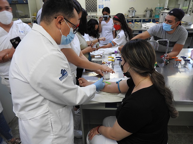 Este entrenamiento en toma de muestras sanguíneas estuvo dirigido por el M.C. Leonel Amed García Montes de la V Jurisdicción Sanitaria, la sesión incluyó capacitación teórica y práctica para alumnos de cuarto semestre que cursan las materias de toxicología y laboratorio.