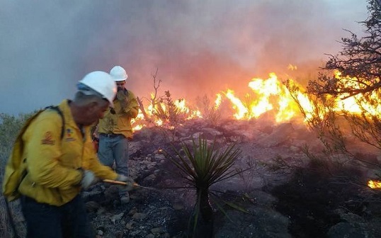La Conafor informó que un total de 72 personas trabajan en el combate, se reportó un 90 por ciento de control en uno y en otro del 50 por ciento.