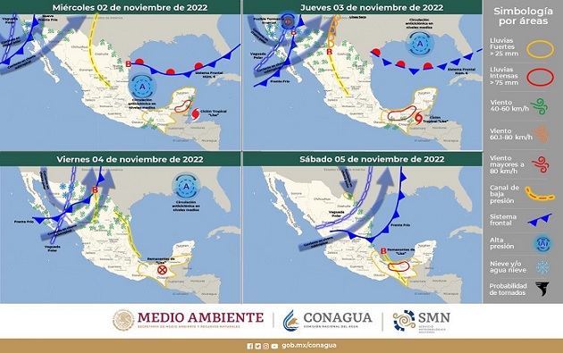 Para el jueves 3 y viernes 4, la entrada del posible Frente Frío numero 7, propiciará el descenso en la temperatura, fuertes ráfagas de viento con tolvaneras.