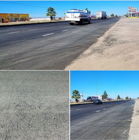 Abrieron a la circulación 1.2 kilómetros y lo que se puede apreciar sin ser perito en la materia que es un mal trabajo, el secretario de obras publicas del Estado se comprometió a que la empresa que gano la licitación realizaría un trabajo de calidad con un pavimento de 6 centímetros de espesor.