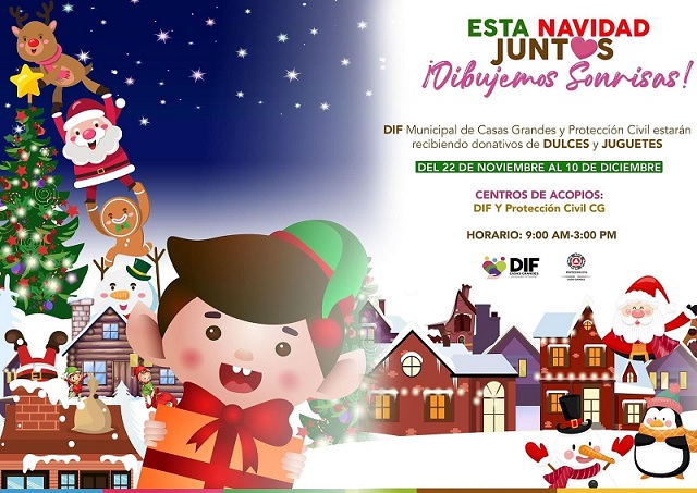 Con motivo de la temporada decembrina que está por comenzar, DIF Municipal de Casas Grandes, Protección Civil y Bomberos se encuentran llevando a cabo la campaña para esta navidad: Juntos Dibujemos sonrisas.