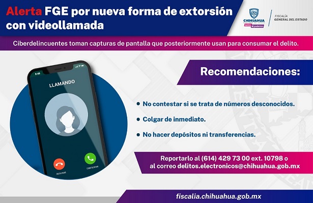 La Fiscalía General del Estado, a través de la Dirección de Análisis de Evidencia Digital e Informática Forense, advierte a la ciudadanía para que evite contestar videollamadas de números desconocidos, con el fin de evitar ser víctimas del delito de extorsión.