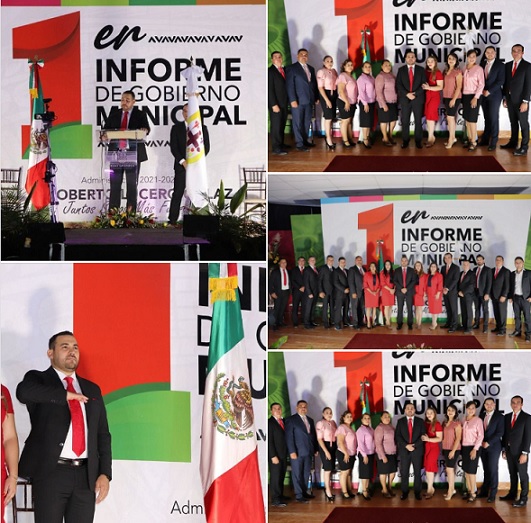 La tarde de este pasado jueves, el Presidente Municipal, Roberto Lucero Galaz entregó el primer informe de Gobierno al cabildo de Casas Grandes Administración 2021-2024 en la sesión de cabildo número 37, así mismo escucho el posicionamiento de los regidores que integran la administración, siendo el portavoz de ellos, el regidor, Juan Oleg Flores Varela.