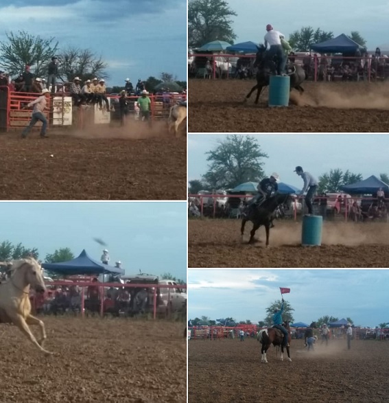 Las acciones comenzaron desde la 1 de la tarde con suertes como la ensilla de caballos, lazo doble, barbeo, herradero y barriles, además de los tradicionales: amarre de chivas, embarque de ganado y la espectacular monta de toros, las cuales les fueron dando puntos a los ranchos participantes en este gran rodeo dominical, todo bajo la conducción magistral del animador y maestro de ceremonias, Alberto “el Caballo” Chávez.