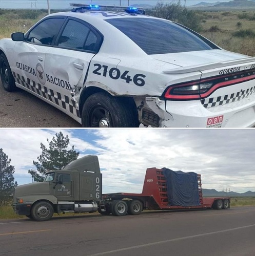 Un elemento de la Guardia Nacional, resultó lesionado, luego de que fuera impactado por el conductor de un tráiler que al parecer conducía a exceso de velocidad y terminó por impactarlo en el tramo carretero que conduce de Nuevo Casas Grandes a Galeana, a la altura del kilómetro 3 donde quedó considerablemente lesionado.