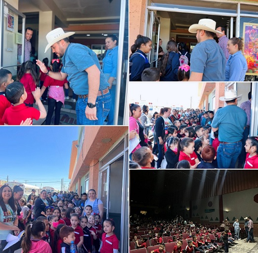 Hoy las instituciones educativas que asistieron a la función de cine fueron: Jardín de niños Paquimé, Juan Escutia, primaria federal Ignacio C. Enríquez, primaria estatal Jaime Nuno de San José y primaria Leona Vicario. Las demás escuelas ya tienen programado el día en que les toco asistir.