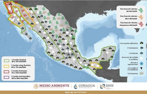 Lo anterior como consecuencia del monzón mexicano que se encuentra sobre el noroeste de México, en combinación con la inestabilidad en niveles altos de la atmósfera, la circulación anticiclónica en niveles medios y un canal de baja presión, que también generará temperaturas desde templadas a cálidas durante la mañana, y calurosas a muy calurosas por la tarde.