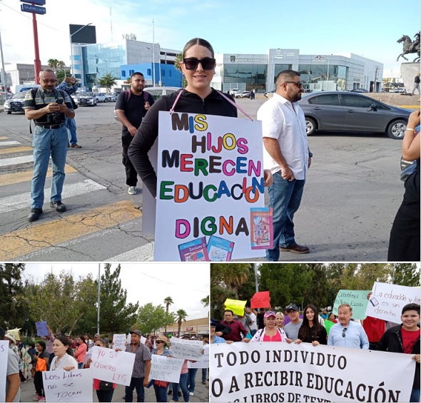 Los diputados de morena se manifestaron junto con padres y madres de familia, así como maestros que marcharon para exigir a la gobernadora María Eugenia Campos Galván, no detenga la entrega de los Libros de Texto Gratuitos en las escuelas públicas del estado.