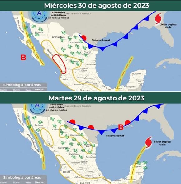 Con base en información emitida por el Servicio Meteorológico Nacional (SMN), la CEPC informó que este fenómeno, en combinación con la humedad del monzón mexicano, ocasionará precipitaciones moderadas a dispersas con intervalos de chubascos.