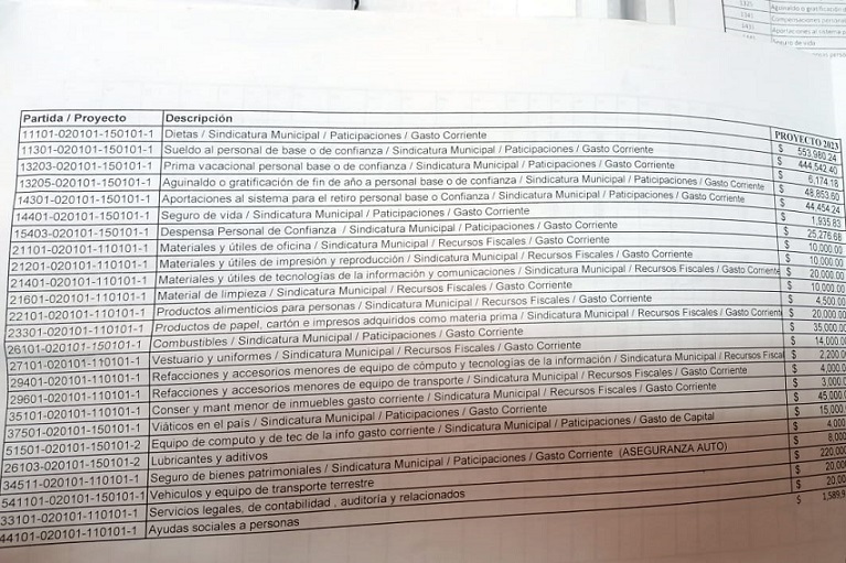 Regidores rechazaron el anteproyecto para sindicatura que presento la sindico municipal Venus Yadira Olmos por mas de 1 millón y medio de pesos, en este ante proyecto la sindico pedía al municipio se le comprara un automóvil nuevo con un valor de $220,000.00, también solicitaba se le proporcionará 20 mil pesos para ayuda sociales a personas, entre otros.