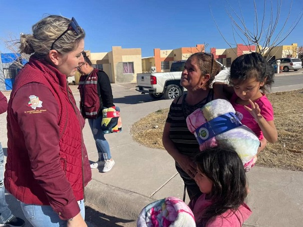 Consiente de las congelantes temperaturas que en los últimos días se han dejado sentir en prácticamente todo el Estado, y del perjuicio que esto trae para las familias de escasos recursos en la región Noroeste del Estado, la diputada local América García, entregó cobijas en colonias del municipio de Nuevo Casas Grandes.