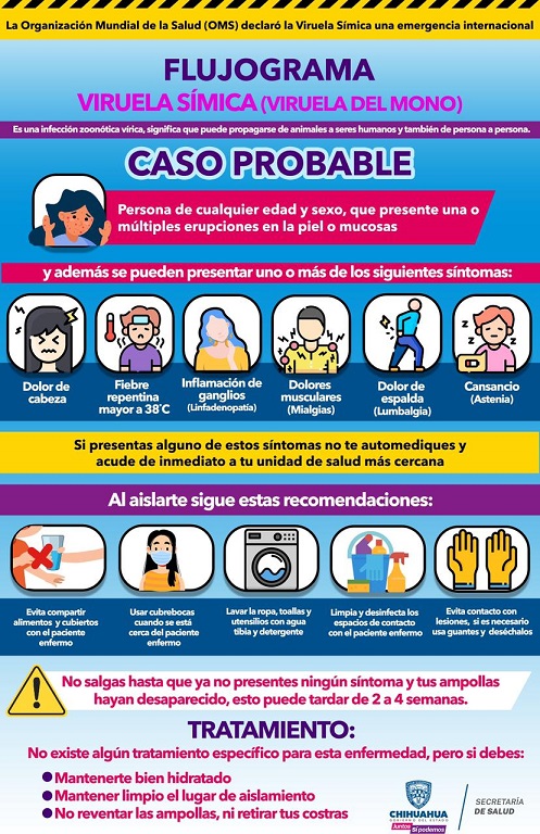 La Secretaría de Salud informa sobre la situación actual de casos de viruela símica en el estado de Chihuahua, y exhorta a la ciudadanía a realizar las medidas de prevención para evitar su transmisión entre las personas.