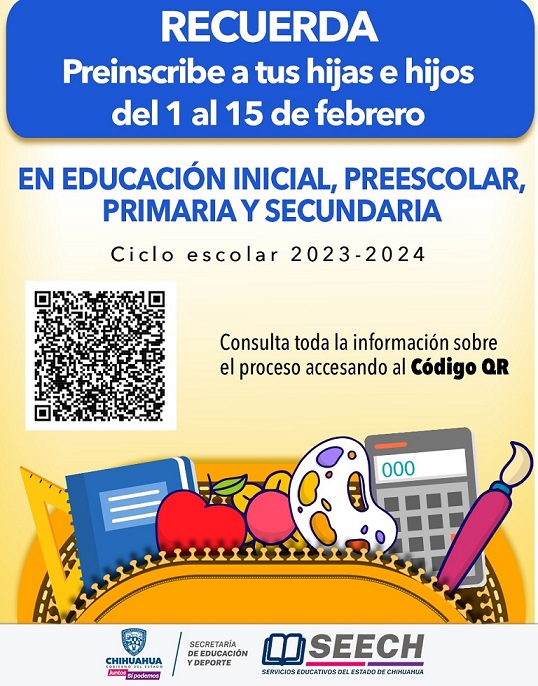 El Gobierno del Estado, a través de la Secretaría de Educación y Deporte (SEyD), informó que este miércoles 1 de febrero comenzó el proceso de preinscripción de alumnas y alumnos de nuevo ingreso en los niveles Inicial, Preescolar, Primaria y Secundaria para el ciclo escolar 2023-2024.