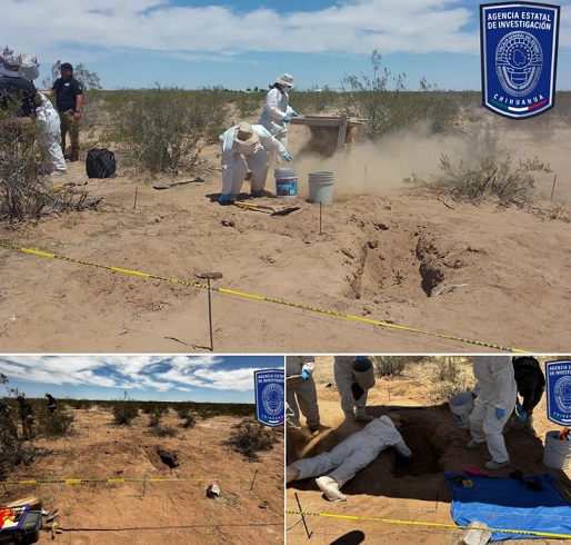 Cabe señalar que, previamente fueron localizados tres fosas con igual número de osamentas, las cuales, junto con todo el material forense procesado en la escena, fueron trasladados a las instalaciones del Servicio Médico Forense de la FGE en Ciudad Juárez, para los análisis y estudios correspondientes. |