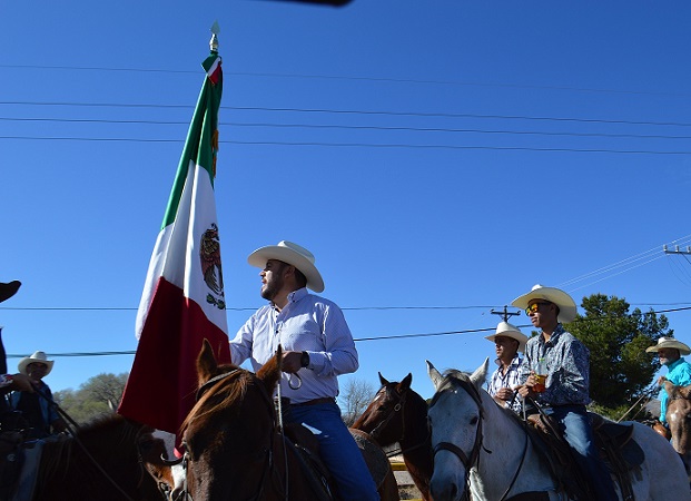 A las 10 de la mañana de este domingo el alcalde Roberto Lucero dio la bienvenida a los cabalgantes que integran la Cabalgata Villista 2023 y se unió a ella portando la bandera de México.