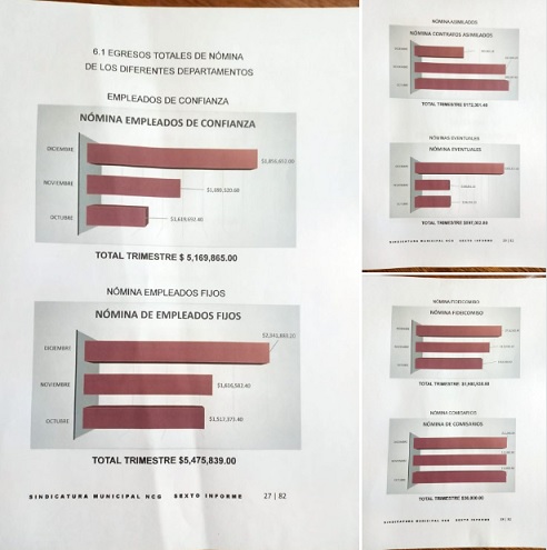 13 millones 352 mil 016 pesos con 80 centavos pagamos los habitantes de Nuevo Casas Grandes a los empleados municipales, estos datos fueron presentados el pasado miercoles por el síndico municipal durante su sexto informe trimestral.