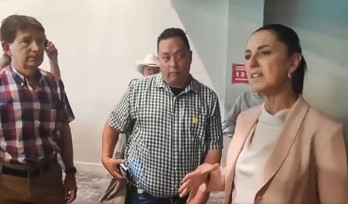 Al llegar a la firma de convenio con presidentes municipales fue abordada por Jorge Chinolla quien también le hablo sobre el proyecto de la Presa Palanganas ahí Claudia Sheinbaum lo invito a la reunión antes mencionada.