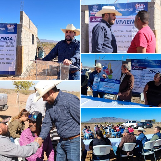 Esta tarde el Alcalde Municipal de Casas Grandes, C. Roberto Lucero Galaz, acompañado del Lic. Ricardo Mendiola Ontiveros, Director Jurídico de COESVI (Comisión Estatal de Vivienda, Suelo e Infraestructura de Chihuahua) dieron arranque oficial de la obra “Juntos por tu vivienda”, la cual consiste en la construcción de seis viviendas que estarán ubicadas en Sección Enríquez.