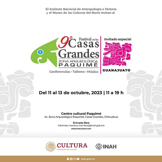 El Instituto Nacional de Antropología e Historia (INAH) en el estado de Chihuahua a través del Centro Cultural Paquimé y en coordinación con el Consejo Regional de Cultura del Norte, invitan al 9no Festival en las Casas Grandes con el objetivo de promover y difundir el patrimonio cultural de la cultura Casas Grandes, además de sede de encuentro con otras culturas originarias de México, en este caso con las que habitan el estado de Guanajuato.
