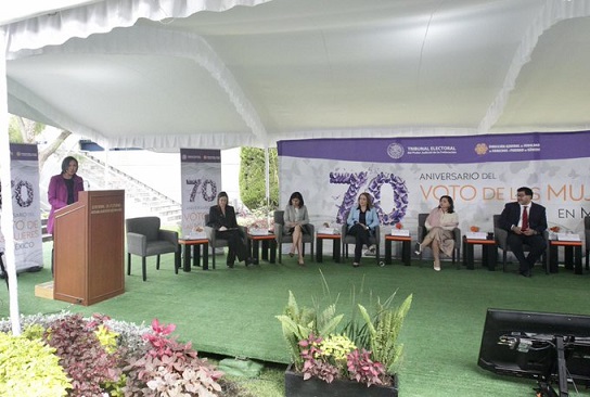 Con el objetivo de reflexionar sobre las aportaciones de la justicia electoral para consolidar la paridad de género en la integración de los órganos de la representación legislativa y ejecutiva a nivel federal, local y municipal, el Instituto Nacional Electoral (INE), el Tribunal Electoral del Poder Judicial de la Federación (TEPJF), representantes del Poder Judicial y Legislativo, así como de organismos autónomos, conmemoraron el 70 Aniversario del Voto de las Mujeres en México.
