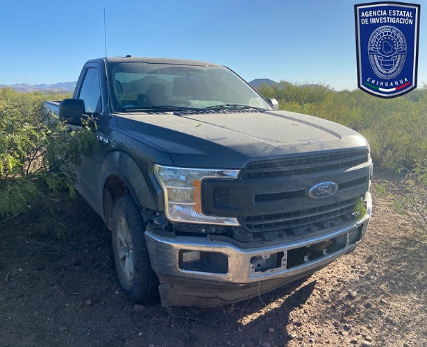 Por medio del trabajo de investigación y búsqueda, ayer domingo, los agentes localizaron el vehículo robado de la marca Ford, línea F-150, de color gris, de reciente modelo, que estaba abandonado en las inmediaciones de la Laguna Fierro.