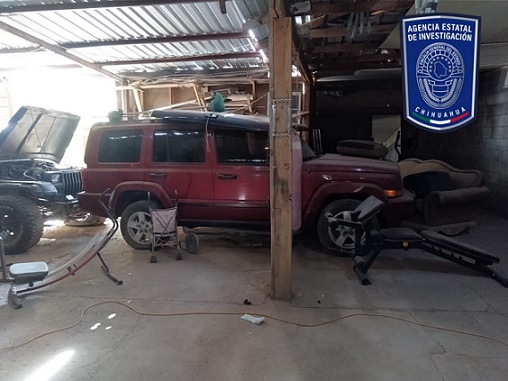 Mientras que en el interior del domicilio se aseguraron los siguientes vehículos: Jeep color rojo cerrado; Jeep color azul sin capote; una cuatrimoto de color negro; una moto acuática blanco con rojo y una traila pequeña, entre otros objetos.
