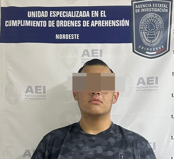 Elementos de la Agencia Estatal de Investigación (AEI), adscritos a la Fiscalía Especializada en Atención a Mujeres Víctimas del Delito por Razones de Género y la Familia de la Zona Noroeste, cumplimentaron una orden de aprehensión girada en contra de Jesús Ernesto F. H., de 25 años de edad, por ser probable responsable del delito de violación, cometido en el municipio de Nuevo Casas Grandes.