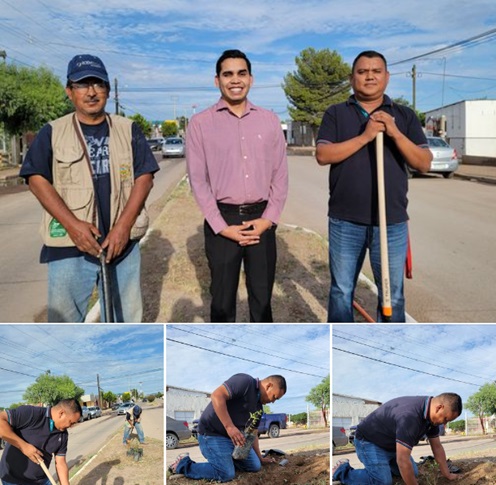 Administración municipal de Nuevo Casas Grandes, a través del departamento de Ecología dio inicio a programa de reforestación en camellones, parques y jardines.