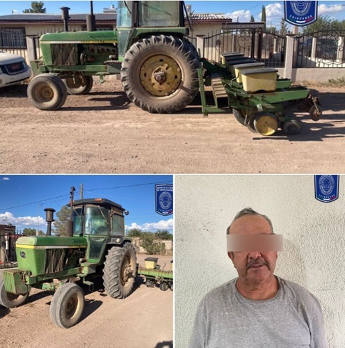La detención del masculino de 55 años de edad, se llevó a cabo ayer lunes 19 de agosto, en el sector Los Guerigos, ubicado a 1.5 kilómetros del citado municipio, asegurándose también un tractor de la marca John Deere 4030, color verde.
