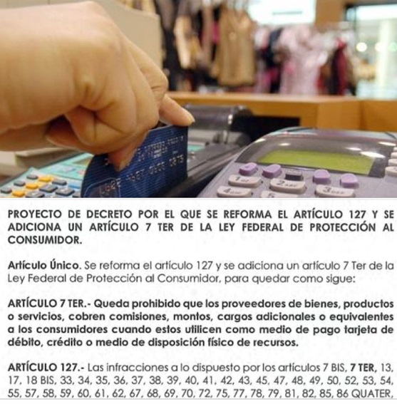 OFICIAL, MULTARAN ESTABLECIMIENTOS QUE COBREN COMISIONES POR EL PAGO CON TARJETA, LA MULTA VA DESDE 701.15 PESOS HASTA 2 MILLONES 243,671.49 PESOS |