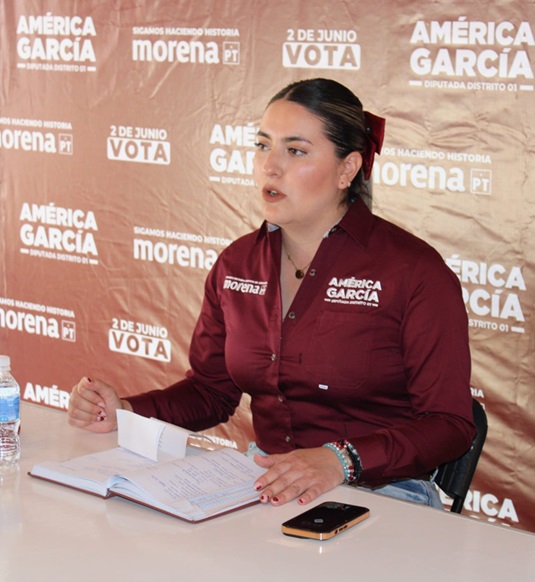 América García, candidata a la diputación local del distrito 01, por la alianza morena - PT, "Juntos Haremos Historia", advirtió que ante el avance que ha tenido el movimiento de izquierda en el noroeste, ha sido más que evidente la intromisión de la titular del Poder Ejecutivo y enumero al menos 5 acciones que así lo acreditan.