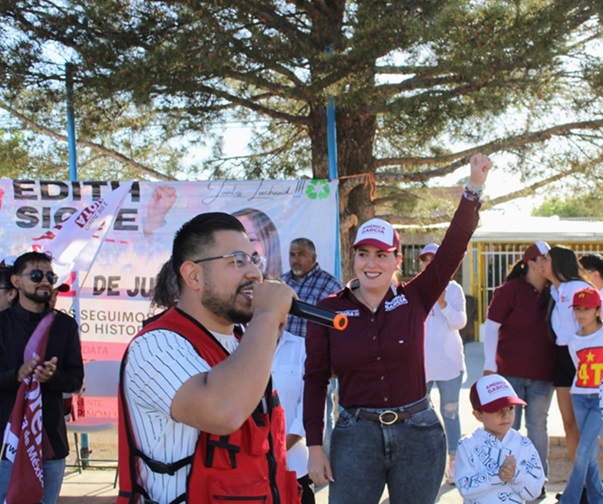 América García reconoció que se ha podido trabajar de una manera coordinada con la presidenta de Nuevo Casas Grandes y ahora también candidata, Edith Escárcega; por lo que agregó que, para poder seguir avanzando en este proyecto de nación que encabeza Claudia Sheinbaum como candidata a la presidencia de la República, es necesario votar por morena y todos sus candidatos este próximo 2 de junio.