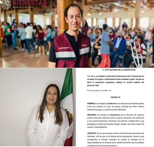 El Tribunal Estatal Electoral (TEE) de Chihuahua resolvió un Procedimiento Especial Sancionador en el que se declaró la existencia de violencia política contra las mujeres en razón de género, cometida por Mario Alberto Saldaña Rodríguez, Delegado Regional del Programa Bienestar, y Janeth Contreras Bañuelas, empleada de la Secretaría del Bienestar.